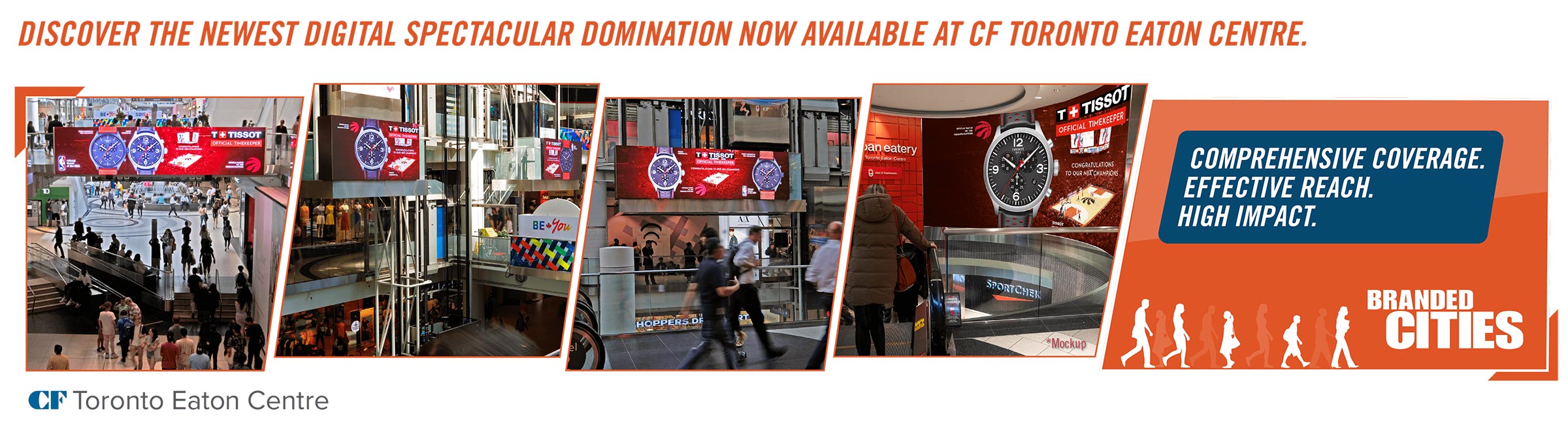 To learn more about digital advertising opportunities at Toronto Eaton Centre, Bay-Dundas and other landmark venues across Canada, please visit our website at brandedcities.ca or contact: